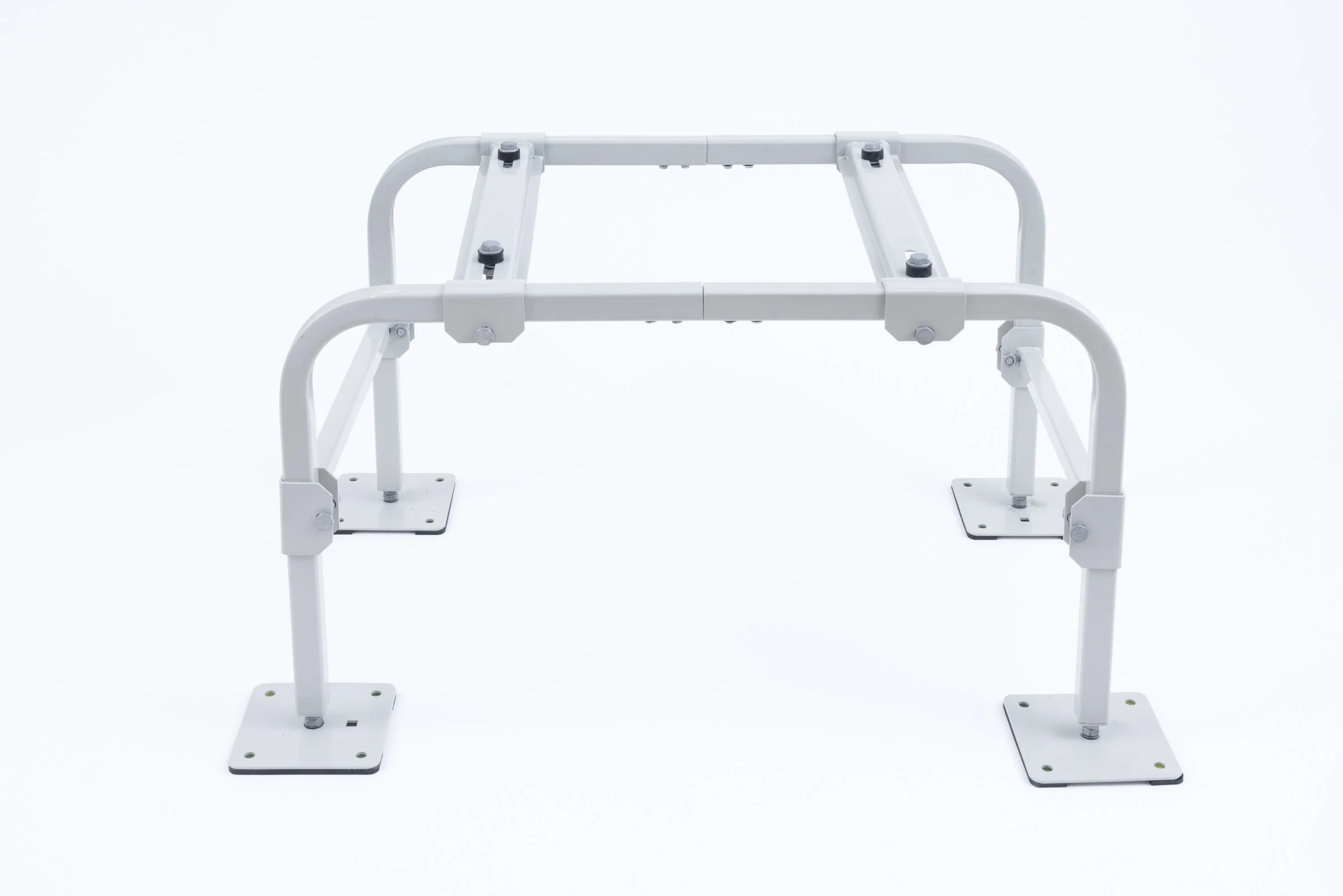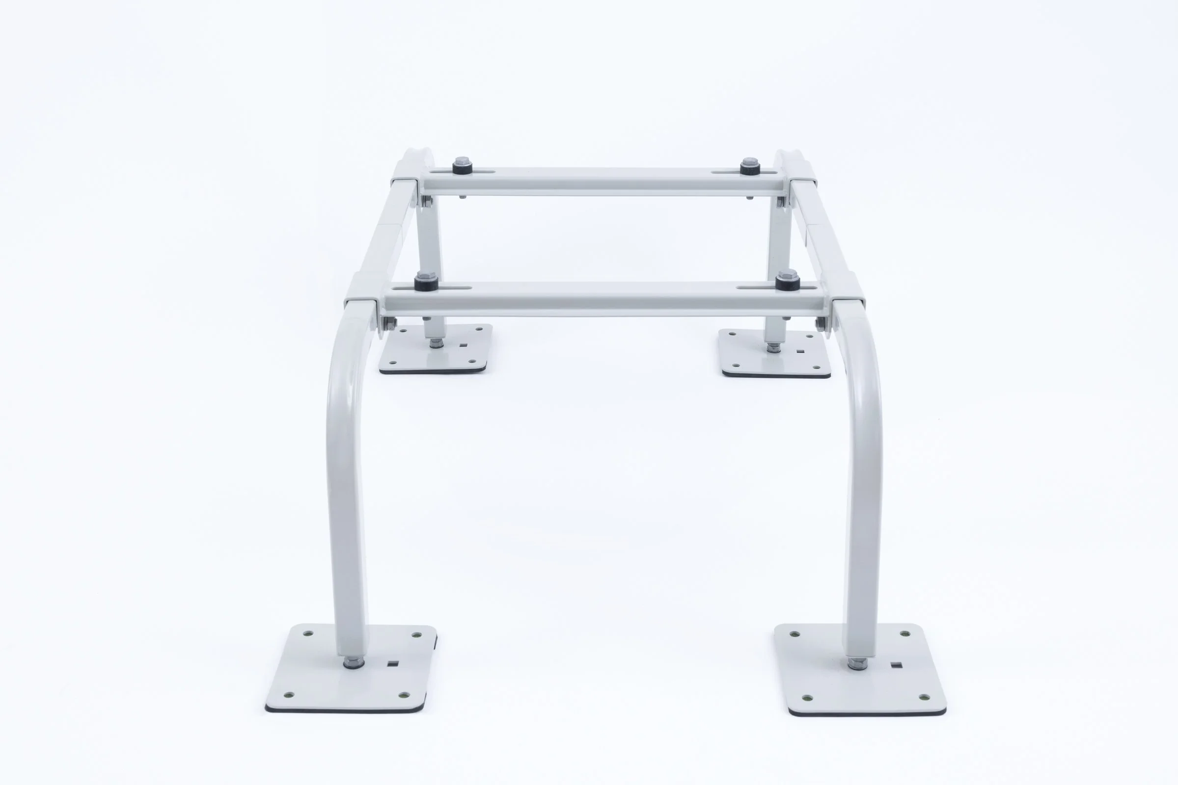 Our powder-coated steel undergoes a multi-step process: water rinsing, oil removal, passivation, drying, and oven curing to ensure maximum strength. All powder-coated equipment stands include vibration isolation pads, adjustable widths, and a 500lb max. capacity.